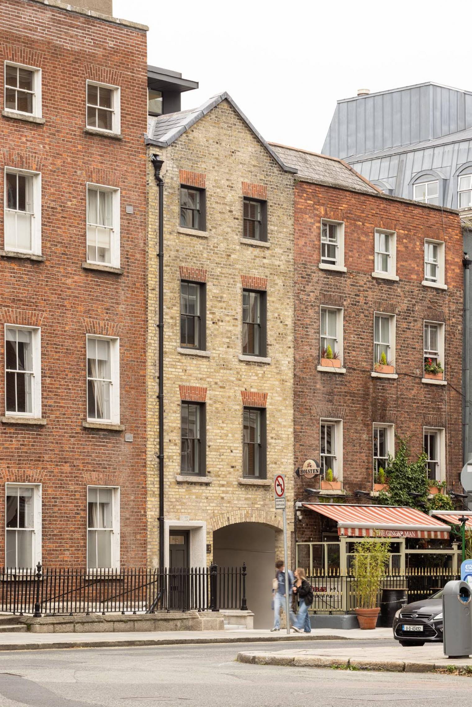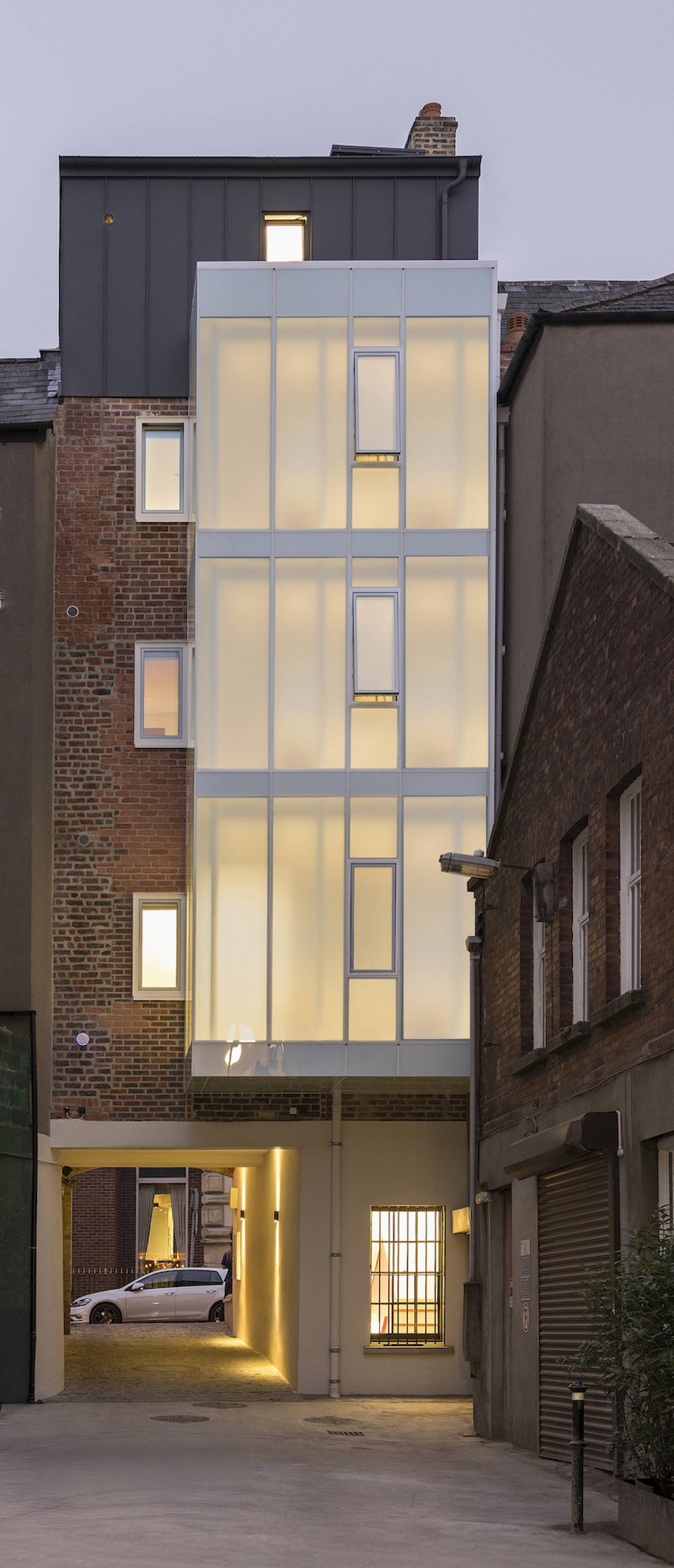 View of rear elevation with a canitlevered glazed addition containing new en-suite shower rooms on the upper floors
