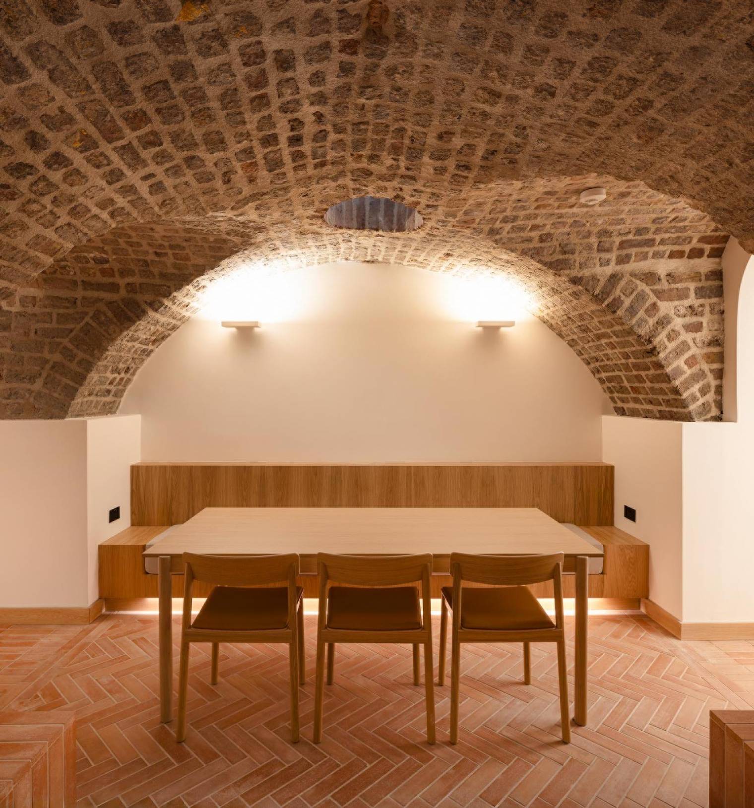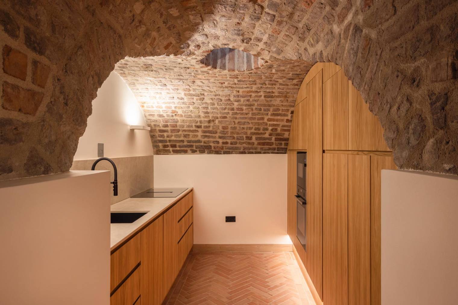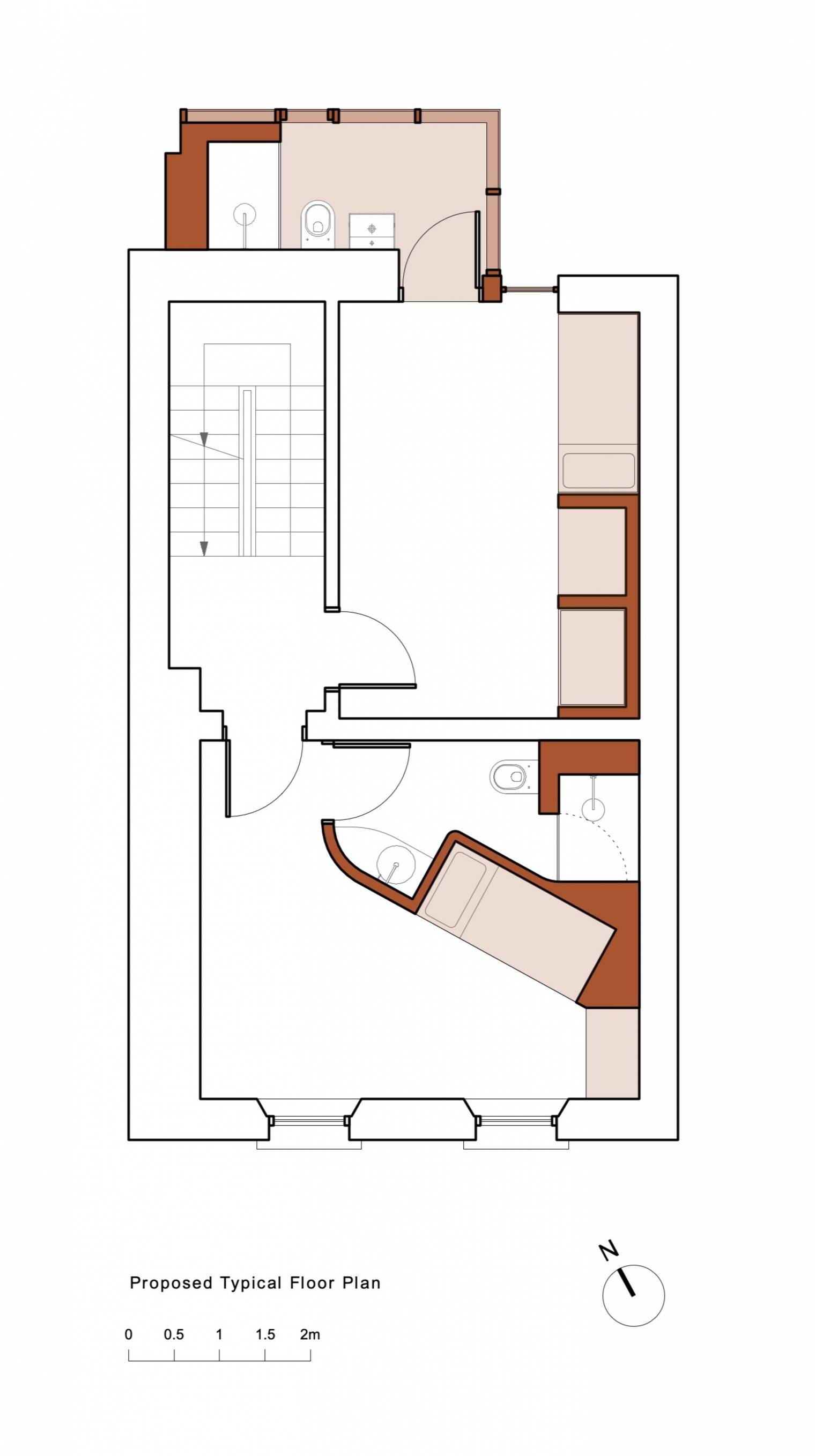 View of new, timber clad steel staircase from Basement to Ground Floor Level