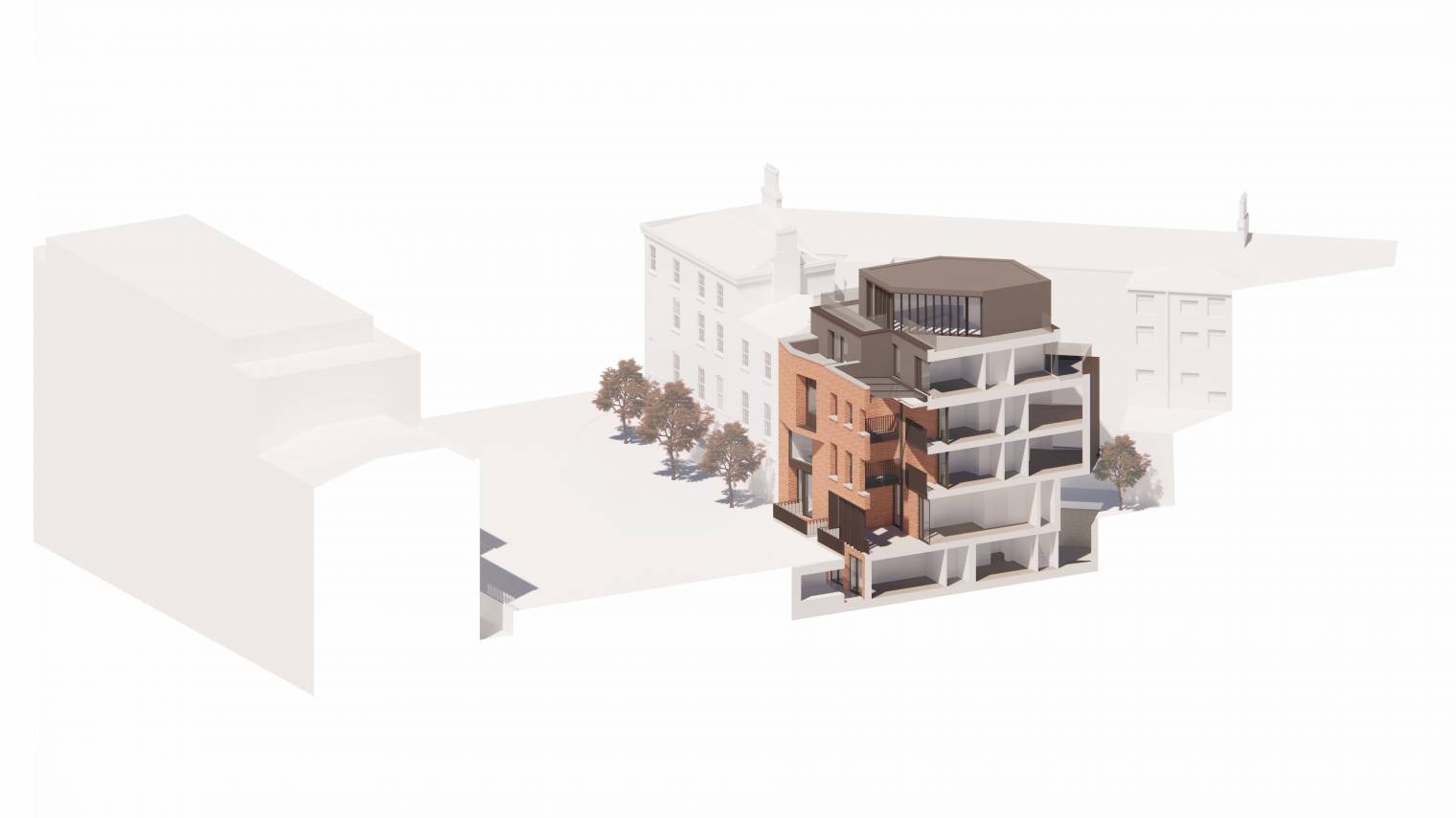 Axonometric section cut through the central atrium space